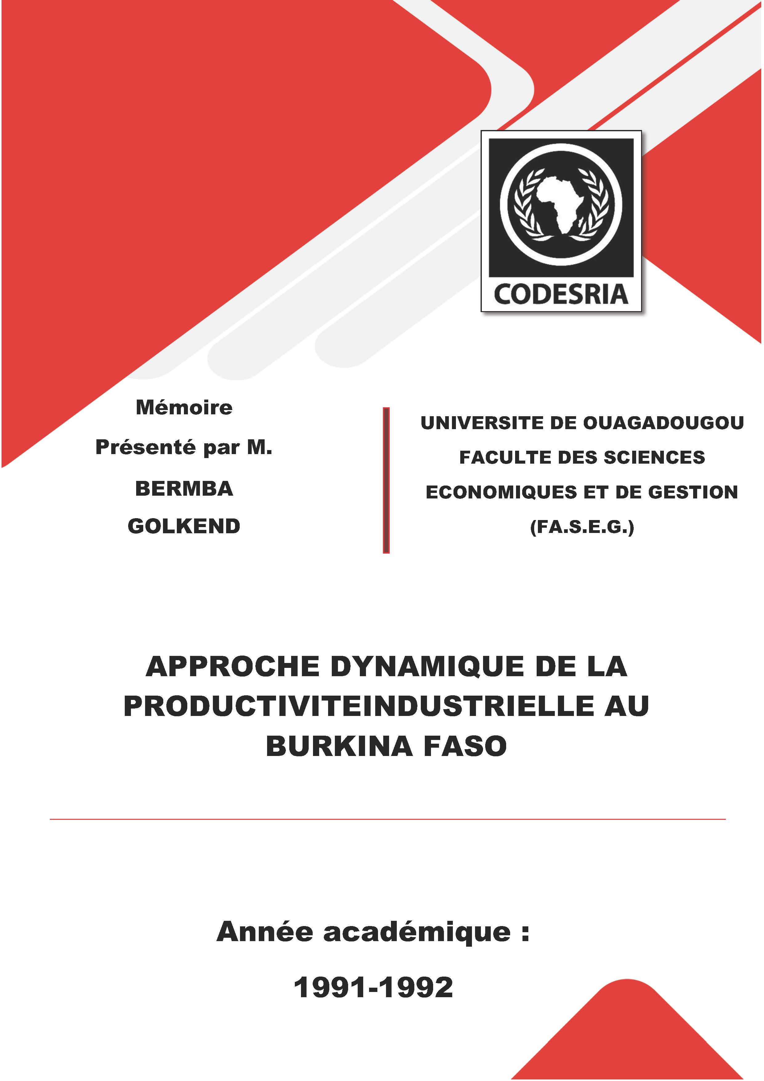 APPROCHE DYNAMIQUE DE LA PRODUCTIVITEINDUSTRIELLE AU BURKINA FASO