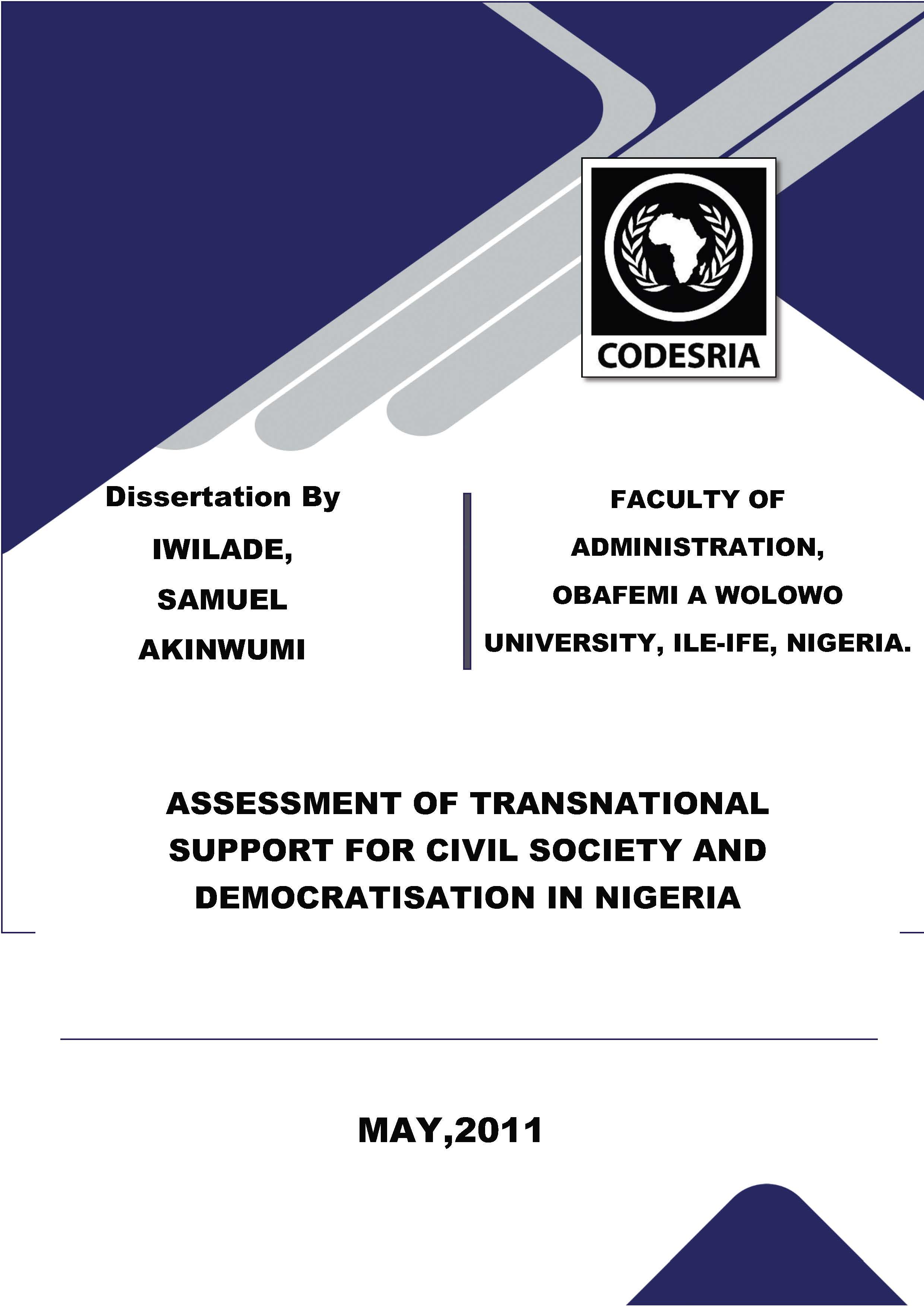 ASSESSMENT OF TRANSNATIONAL SUPPORT FOR CIVIL SOCIETY AND DEMOCRATISATION IN NIGERIA