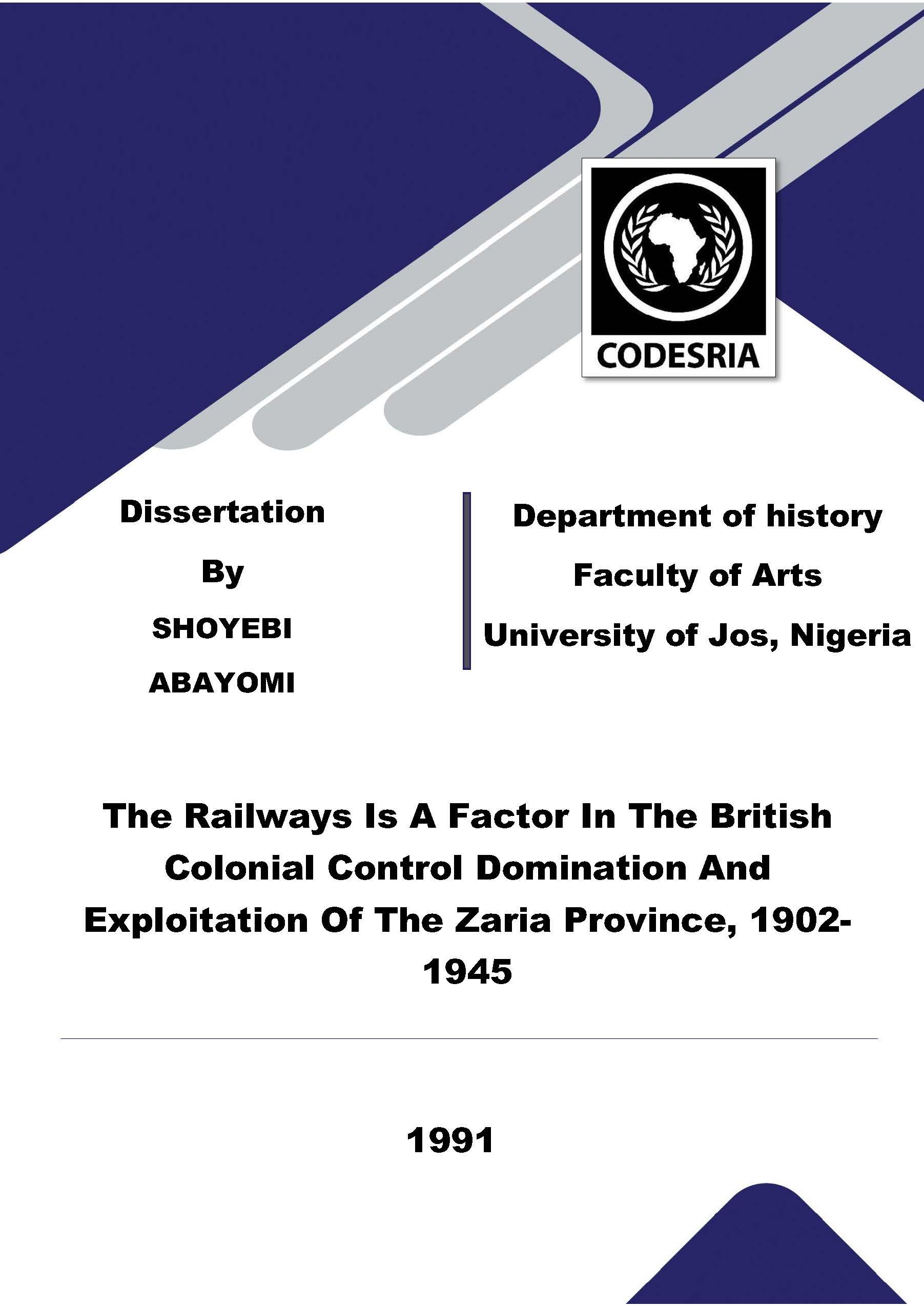 The Railways Is A Factor In The British Colonial Control Domination And Exploitation Of The Zaria Province, 1902-1945