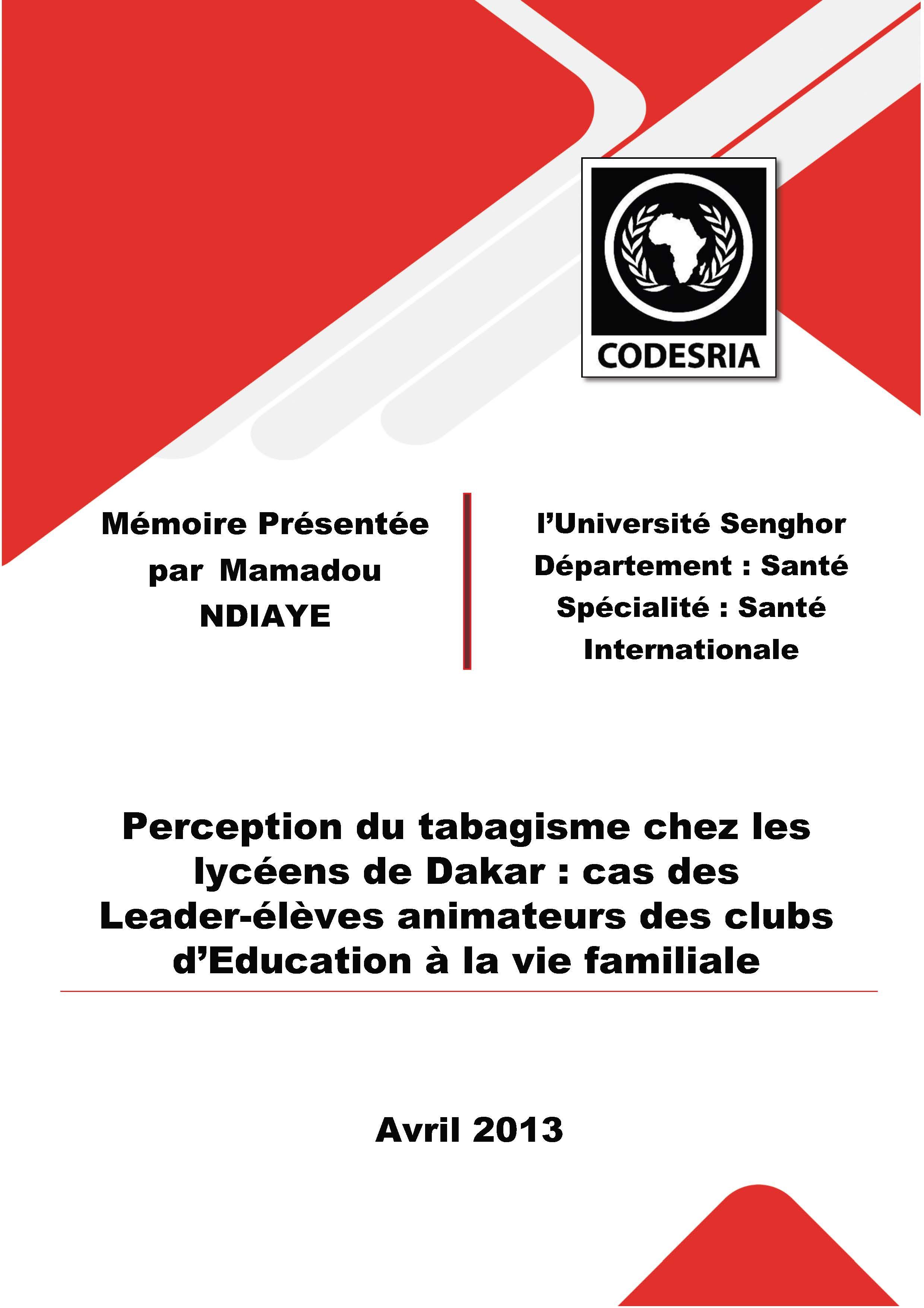 Perception du tabagisme chez les lycéens de Dakar: cas des Leader-élèves animateurs des clubs d’Education à la vie familiale
