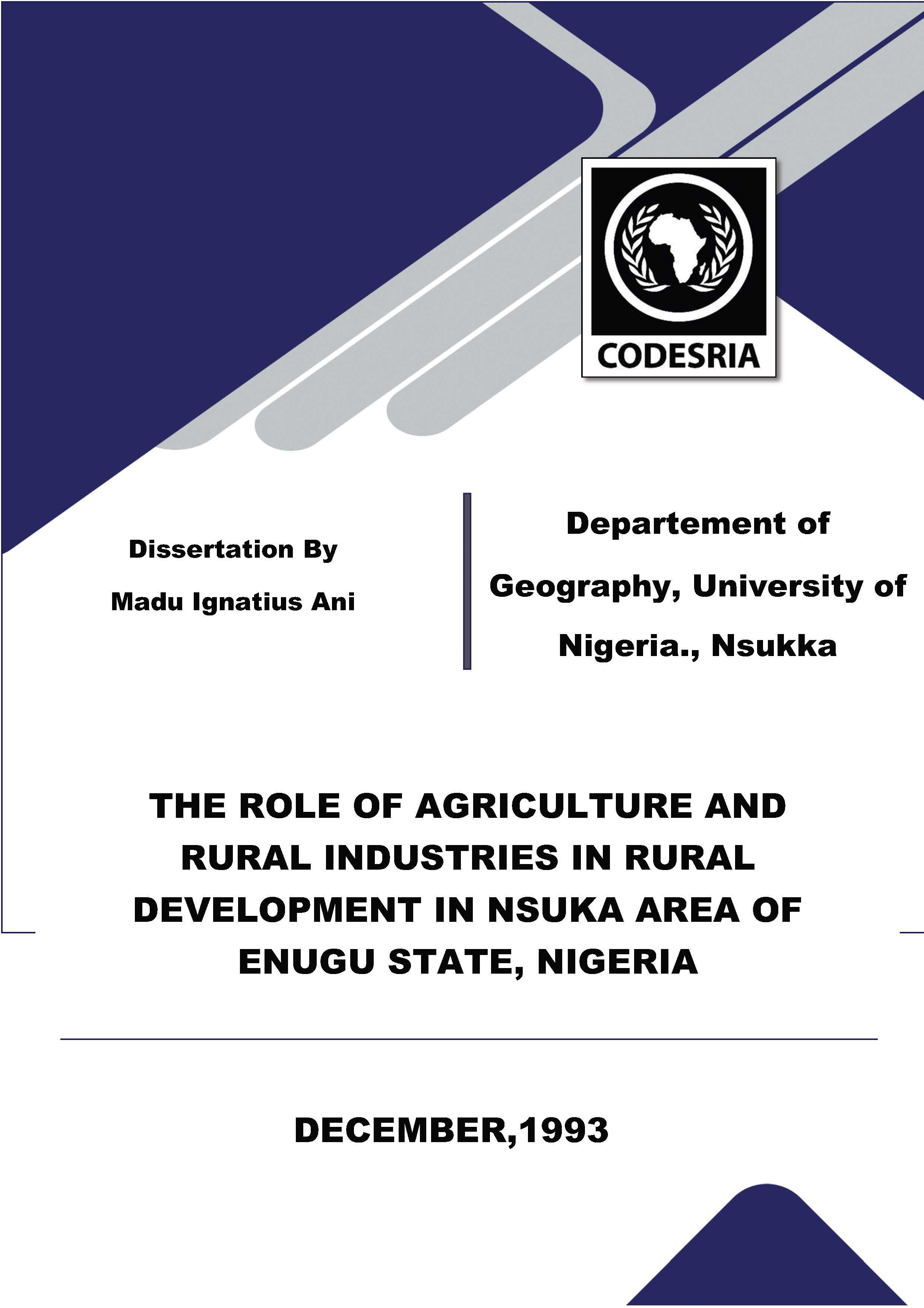 THE ROLE OF AGRICULTURE AND RURAL INDUSTRIES IN RURAL DEVELOPMENT IN NSUKA AREA OF ENUGU STATE, NIGERIA