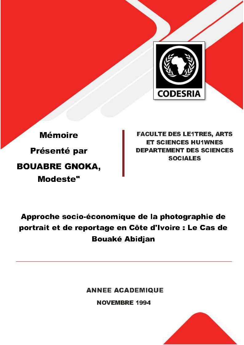 Approche socio-économique de la photographie de portrait et de reportage en Côte d'Ivoire : le cas de Bouaké