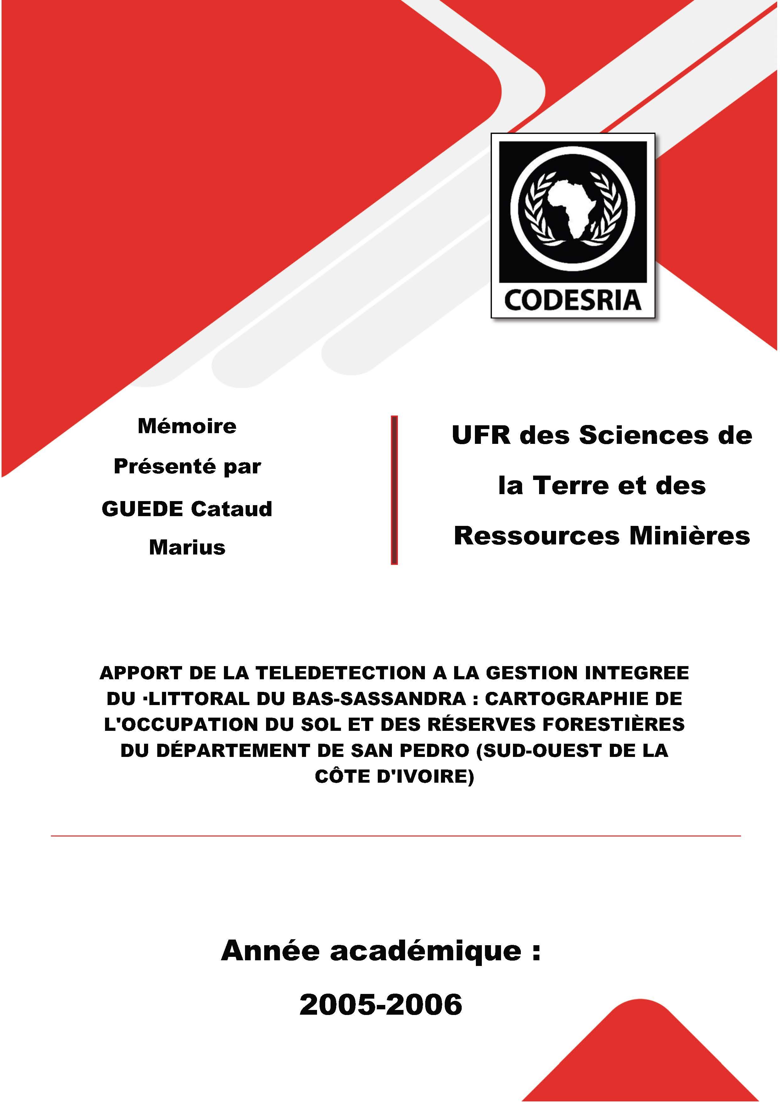 APPORT DE LA TELEDETECTION A LA GESTION INTEGREE DU ·LITTORAL DU BAS-SASSANDRA : CARTOGRAPHIE DE L'OCCUPATION DU SOL ET DES RÉSERVES FORESTIÈRES DU DÉPARTEMENT DE SAN PEDRO (SUD-OUEST DE LA CÔTE D'IVOIRE)