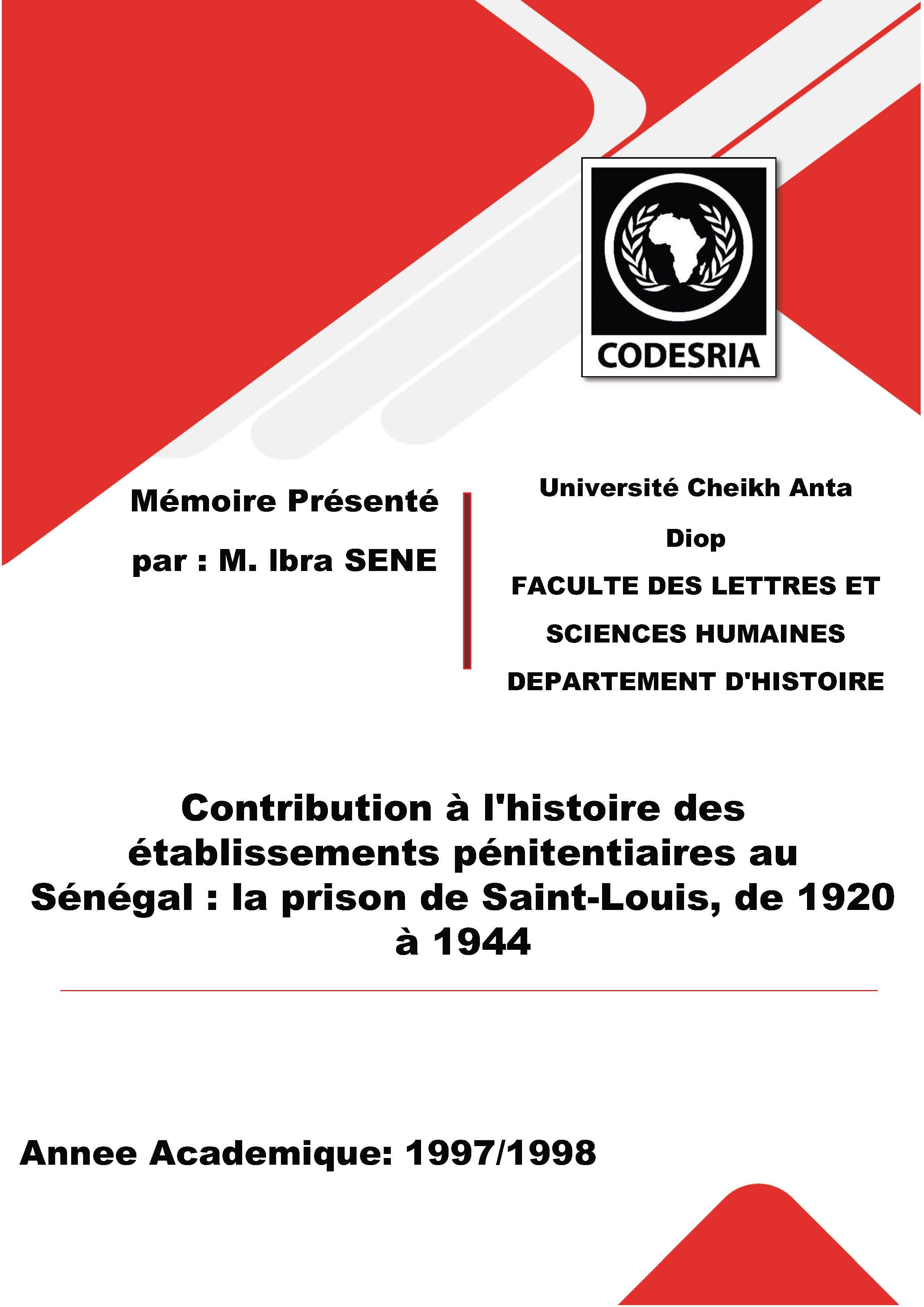 Contribution à l'histoire des établissements pénitentiaires au Sénégal : la prison de Saint-Louis, de 1920 à 1944