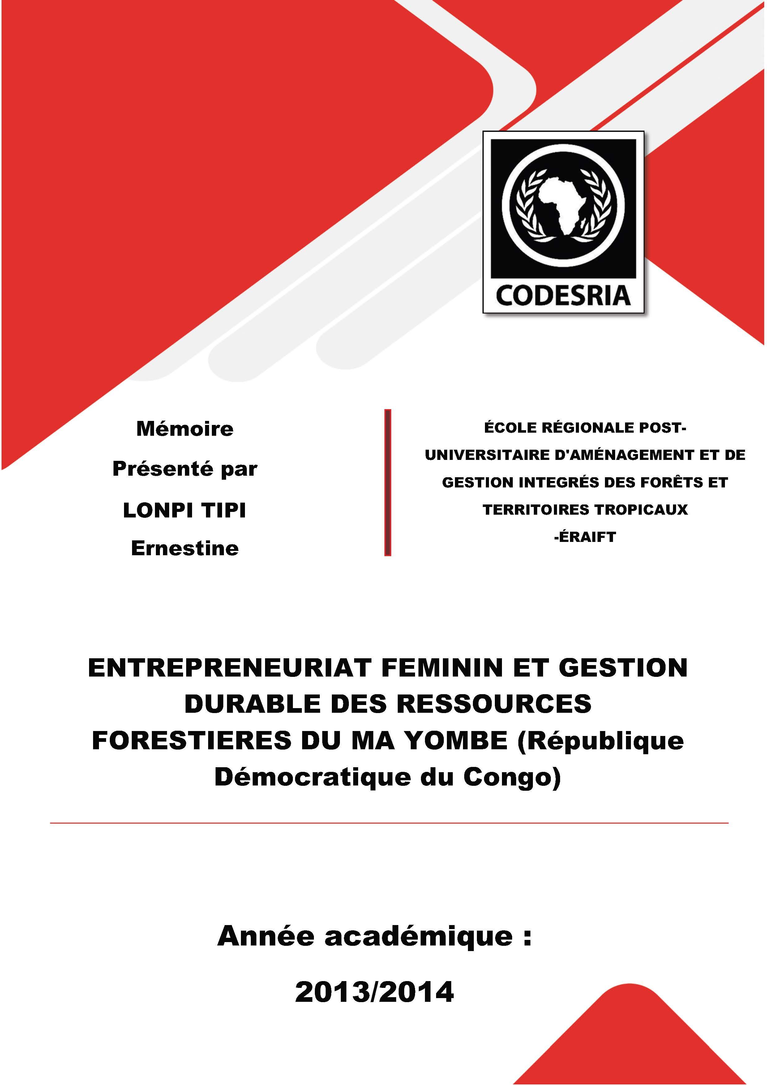 ENTREPRENEURIAT FEMININ ET GESTION DURABLE DES RESSOURCES FORESTIERES DU MA YOMBE (République Démocratique du Congo)