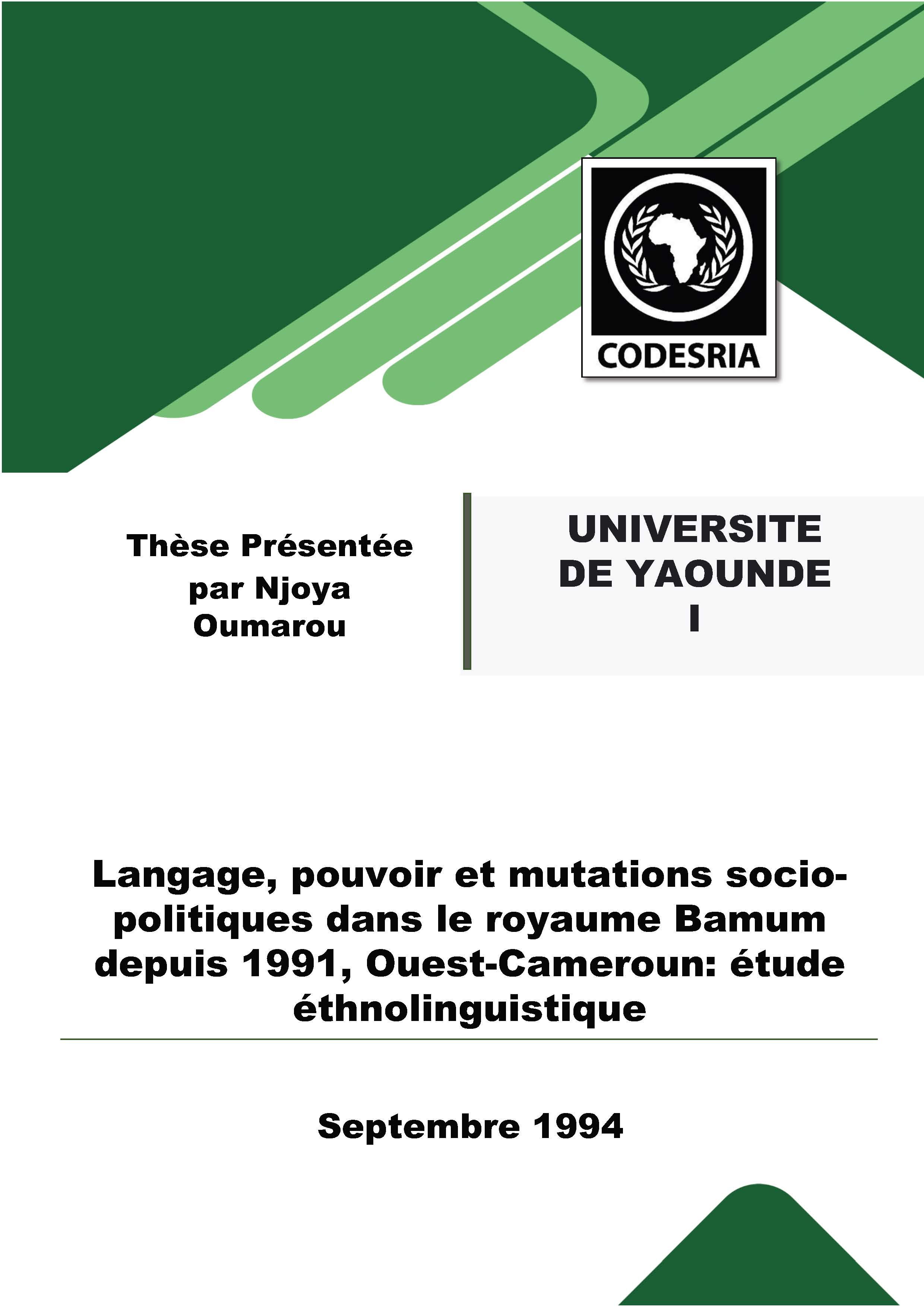 Langage, pouvoir et mutations sociopolitiques dans le royaume Bamum depuis 1991, Ouest-Cameroun: étude éthnolinguistique
