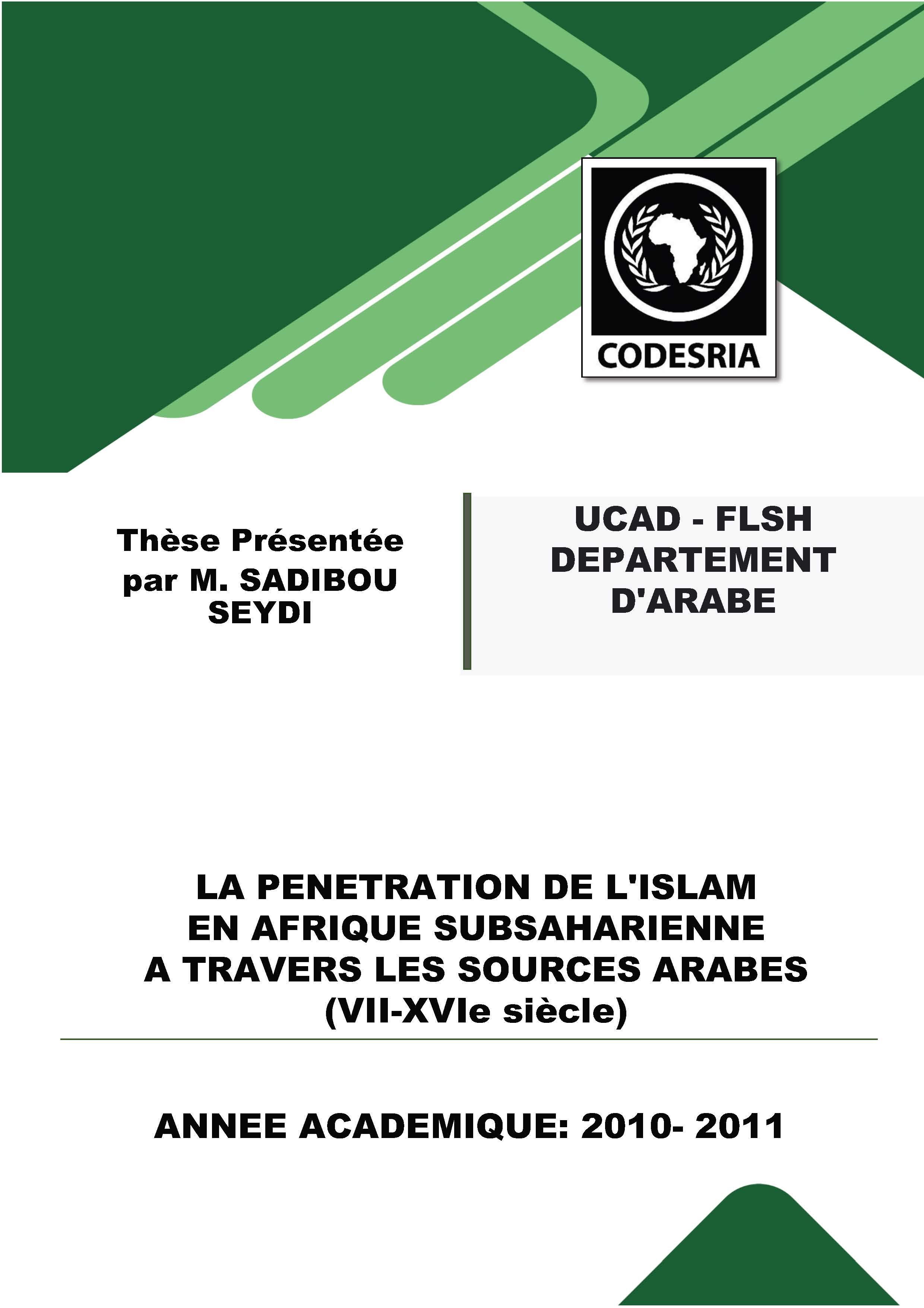 LA PENETRATION DE L'ISLAM EN AFRIQUE SUBSAHARIENNE A TRAVERS LES SOURCES ARABES (VII-XVIe siècle)