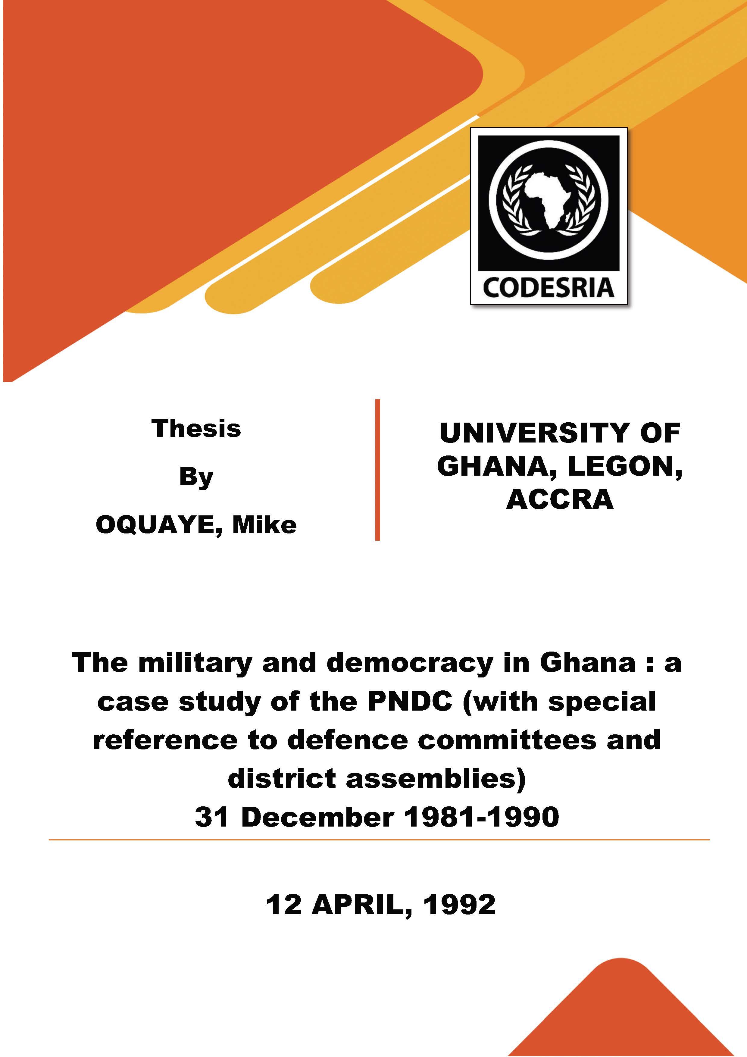 The military and democracy in Ghana: a case study of the PNDC (with special reference to defence committees and district assemblies) 31 December 1981-1990