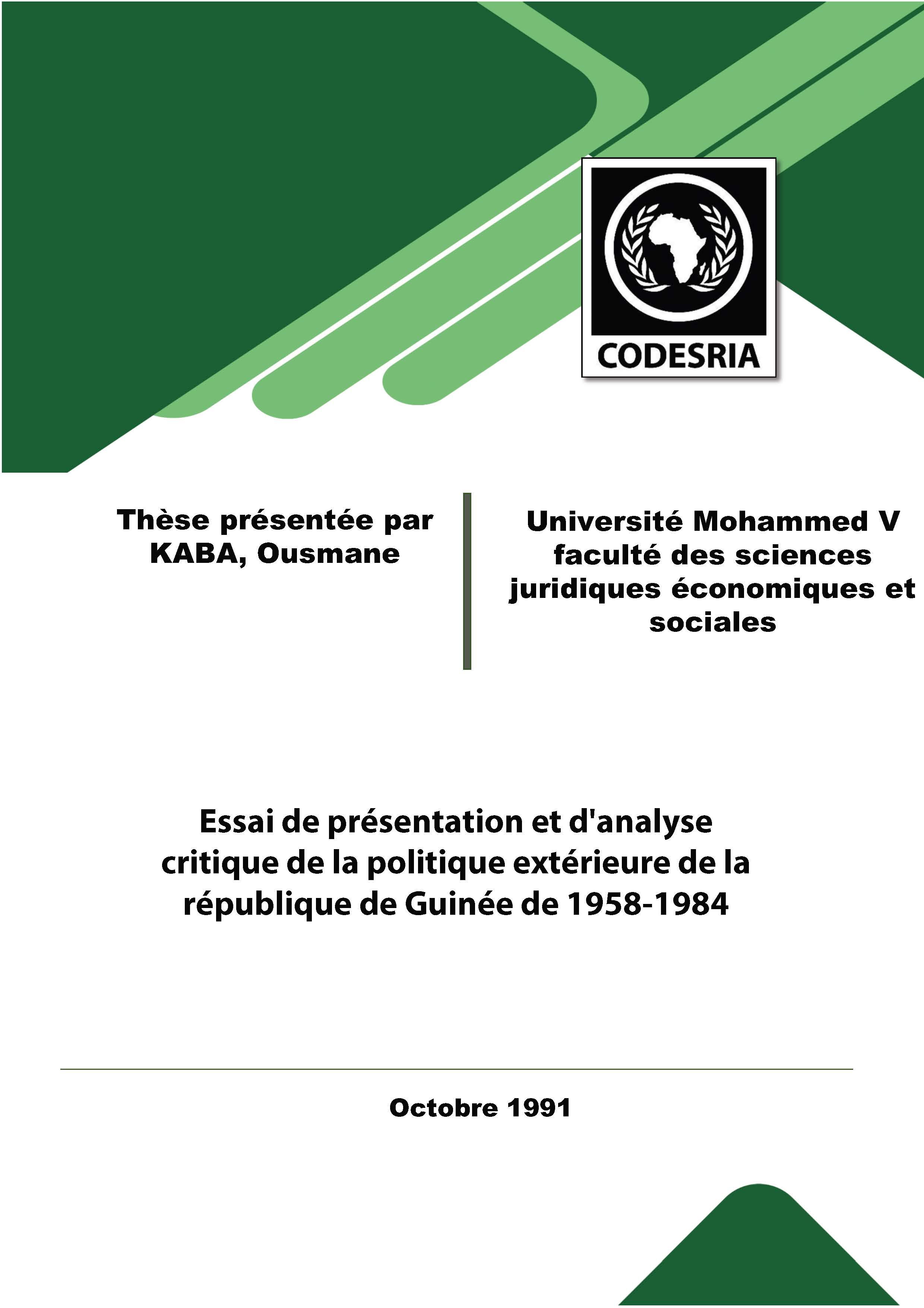 Essai de présentation et d'analyse critique de la politique extérieure de la république de Guinée de 1958-1984