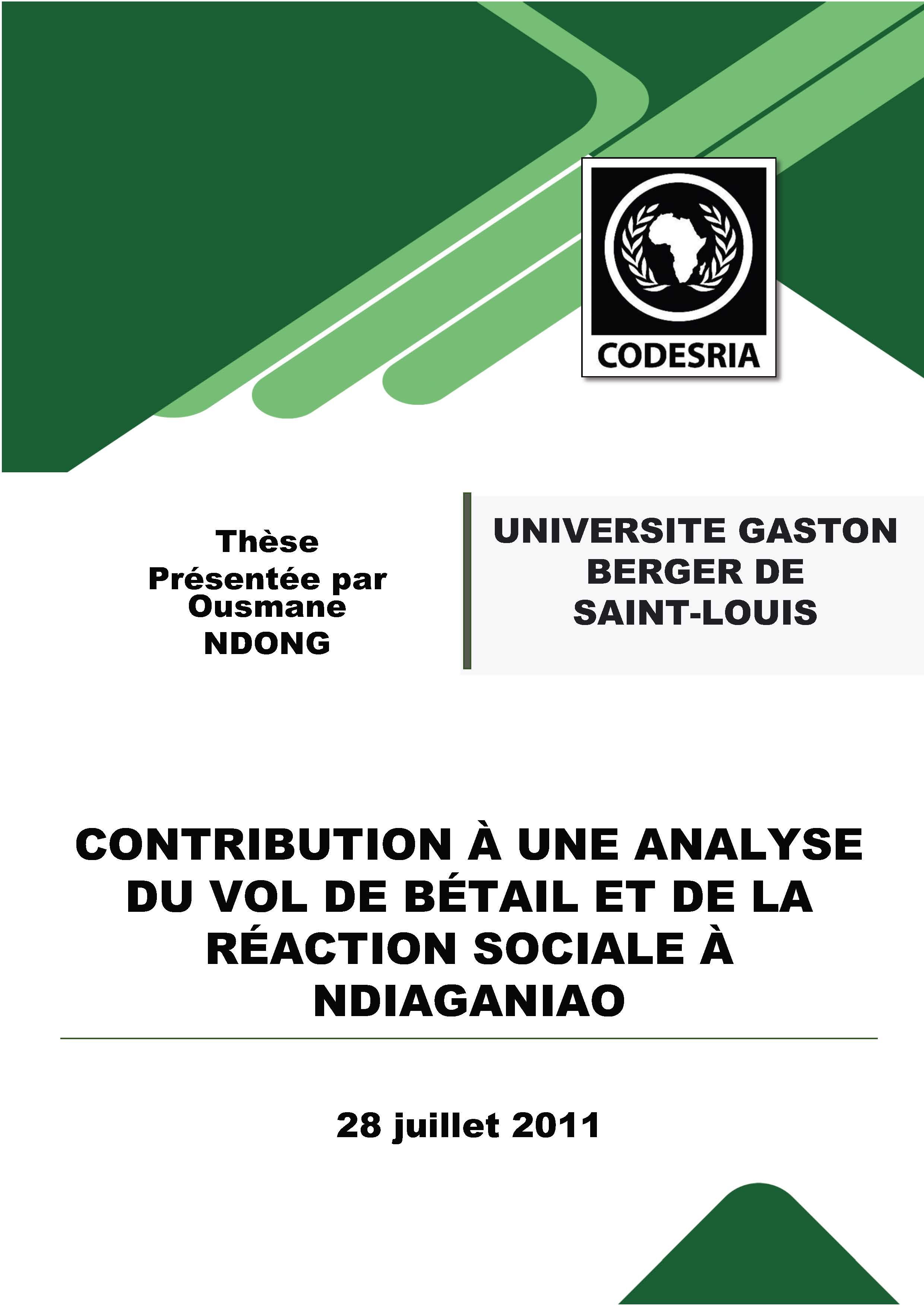 CONTRIBUTION À UNE ANALYSE DU VOL DE BÉTAIL ET DE LA RÉACTION SOCIALE À NDIAGANIAO